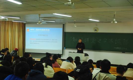 习近平总书记在哲学社会科学工作座谈会上指出:“繁荣发展我国哲学社会科学,必须解决好学风问题。12月23日上午,“知行讲坛”之研究生学术诚信教育在黄金校区第二教学楼408教室举行。
