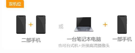 本次网络远程复试考生端要求双机位,如下图模式配置置:
