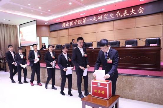 接着,大会代表刘莹莹会中宣读《赣南医学院研究生会章程》,与会代表听取并审议通过了《赣南医学院研究生会章程》;同时通过无记名投票方式,与会代表选举产生了第一届赣南医学院研究生会主席团成员,标志着首届研究生会正式成立。