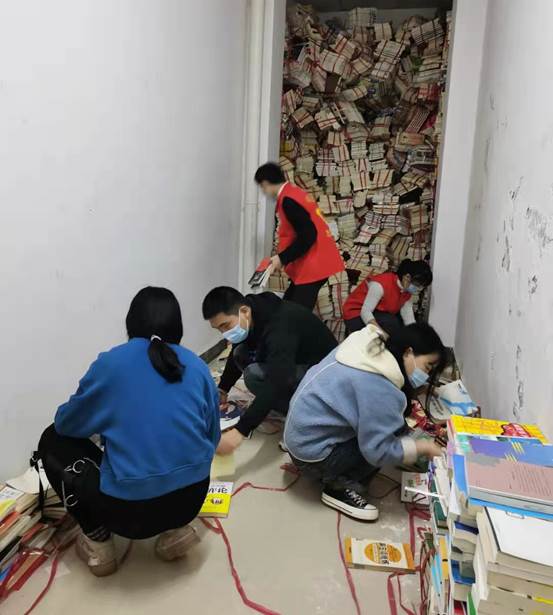 当天,40余名研究生志愿者在图书馆老师的带领下,分成三组开始图书整理工作。在堆积如山的书籍面前,志愿者们斗志昂扬,在浓浓纸张气息的书架间默契地形成了书籍搬运整理的工作流水线,安静高效地将杂乱的书籍分类摆放。